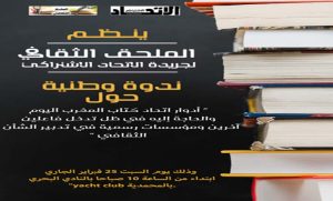 ينظم «الملحق الثقافي» لجريدة الاتحاد الاشتراكي، ندوة وطنية حول أدوار اتحاد كتاب المغرب اليوم والحاجة إليه في ظل تدخل فاعلين آخرين ومؤسسات رسمية في تدبير الشأن الثقافي، وذلك يومه السبت 25 فبراير الجاري ابتداء من الساعة 10 صباحا بالنادي البحري «yacht club بالمحمدية.